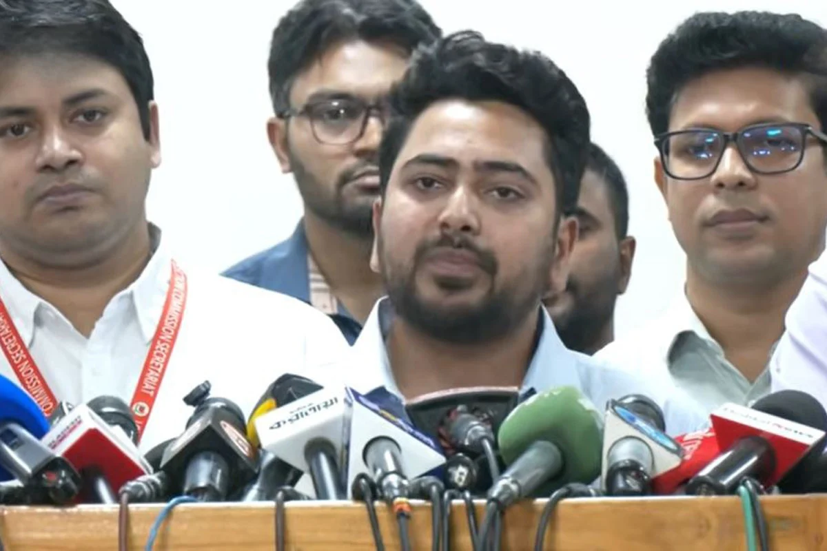 বুধবার নির্বাচন কমিশনের সঙ্গে বৈঠকের পর সাংবাদিকদের সাথে কথা বলেন জাতীয় নাগরিক পার্টির আহ্বায়ক নাহিদ ইসলাম। ছবি: সংগৃহীত